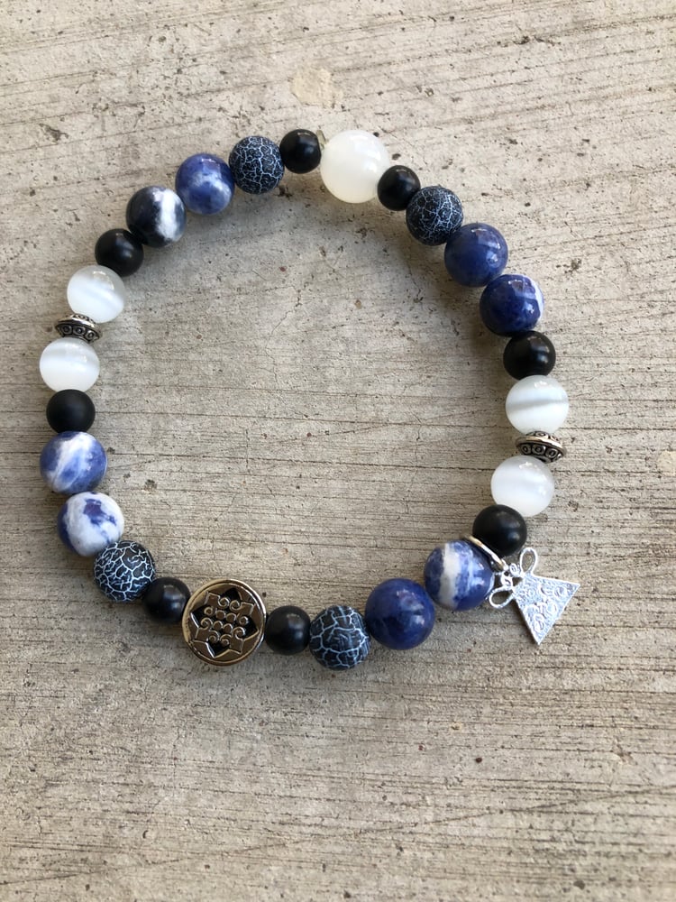 Made with the perfect combination of earth beads to create the perfect balance, and energy for the One who resonates with it. Assorted size beads from 6mm-10mm with Zinc Alloy logo bead. Made with high quality elastic. Has Hmong Charm.