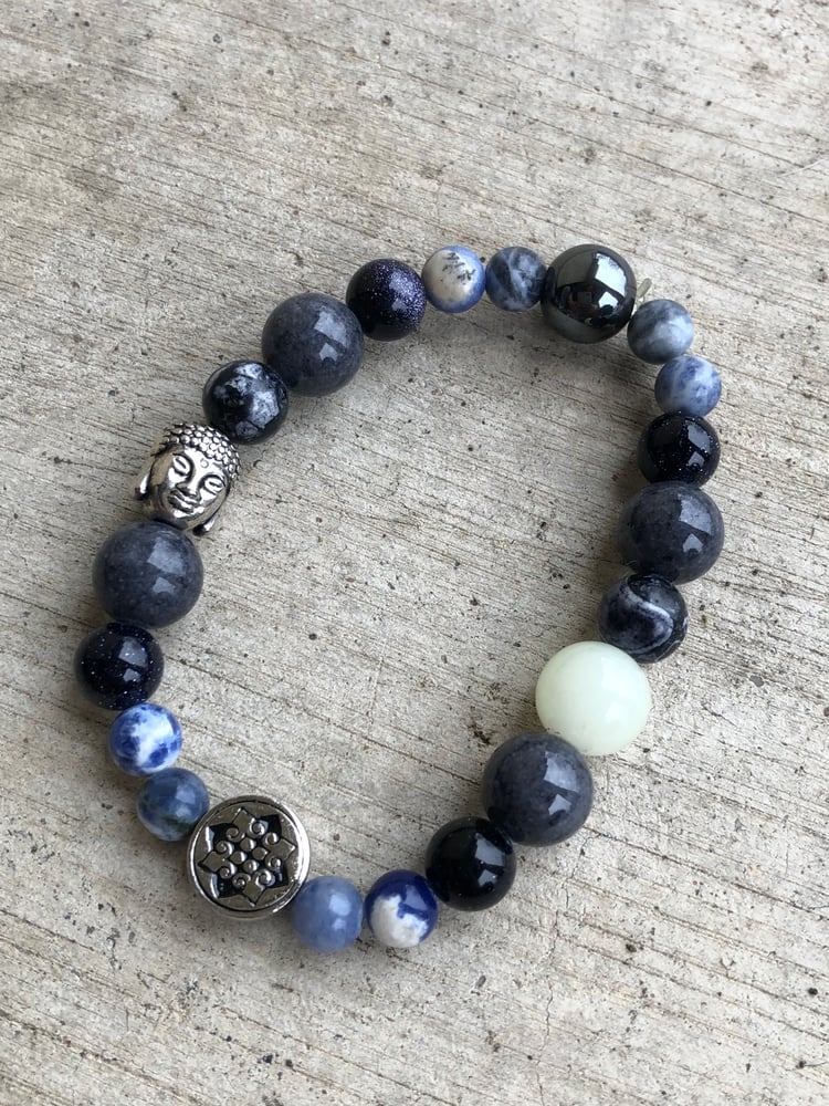 Made with the perfect combination of earth beads to create the perfect balance, and energy for the One who resonates with it. Assorted size beads from 6mm-10mm with Zinc Alloy logo bead. Made with high quality elastic. Has Buddha charm.