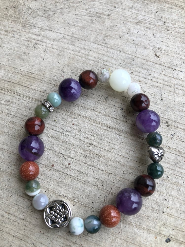 Made with the perfect combination of earth beads to create the perfect balance, and energy for the One who resonates with it. Assorted size beads from 6mm-10mm with Zinc Alloy logo bead. Made with high quality elastic. Has star heart charm bead.
